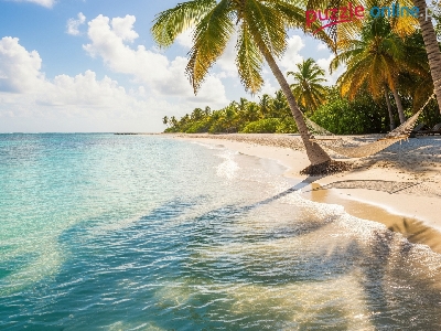 Morze, Plaża, Chmury, Hamak, Palmy