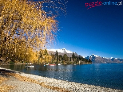 Drzewa, Plaża, Nowa Zelandia, Jezioro, Góry, Wakatipu