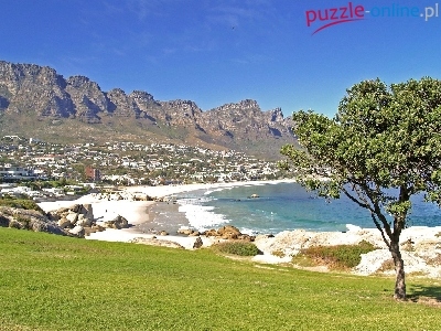 Puzzle Plaża, Góry, Drzewo, Fale