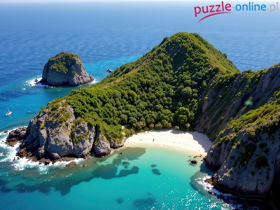 Zatoka, Morze, Góra, Gafika AI, Zalesiona, Skały, Plaża