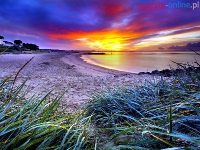 Puzzle Plaża, Zachód, Jezioro, Trawa