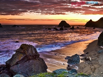 Puzzle Plaża, Zachód Słońca, Kamienie, Morze