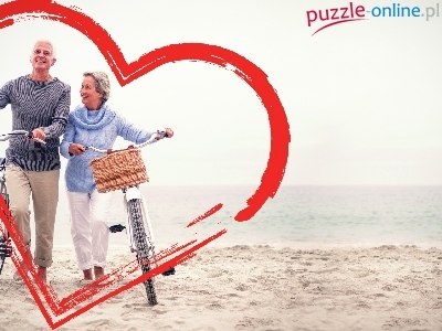 Plaża, Serce, Mężczyzna, Kobieta, Rowery