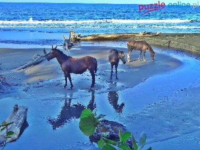 Puzzle Plaża, Trzy, Konie, Morze