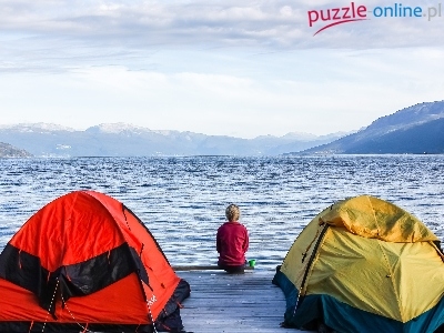 Puzzle Plaża, Kobieta, Morze, Namioty