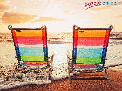 Puzzle Plaża, Niebo, Morze, Leżaki