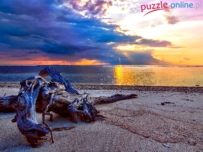 Plaża, Drzewa, Zachód Słońca, Morze, Konar