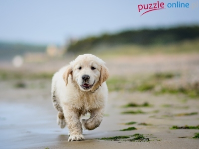 Puzzle Plaża, Szczeniak, Golden retriever, Woda