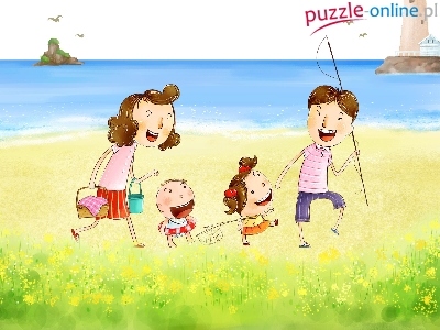 Puzzle Plaża, Szczęśliwa, Rodzinka, Morze