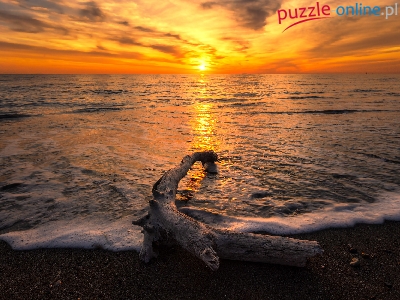 Fale, Konar, Uschnięty, Plaża, Zachód słońca, Morze