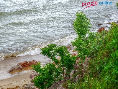 Woda, Plaża, HDR, Wybrzeże, Morze, Fale, Rośliny
