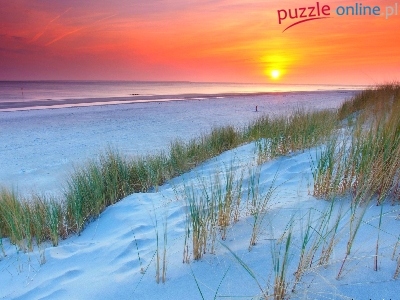 Puzzle Plaża, Zachód Słońca, Wydmy, Morze