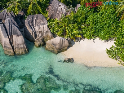 Plaża, Roślinność, Głazy, Seszele, Wyspa La Digue, Skały, Wyspa, Morze
