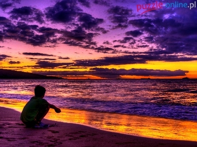 Puzzle Plaża, Morze, Zachód, Chłopiec