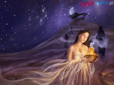Puzzle Płomień, Kobieta, Medalion, Noc