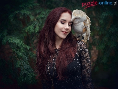 Puzzle Płomykówka zwyczajna, Dziewczyna, Sowa, Drzewa
