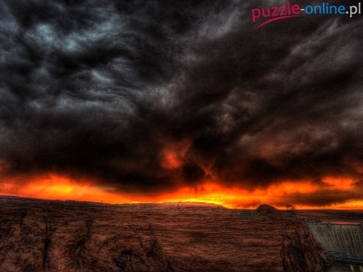 Puzzle Płonące, Pole, Ciemne, Niebo