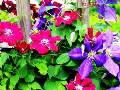 Fioletowy, Płot, Ogród, Liście, Clematis, Różowy, lato