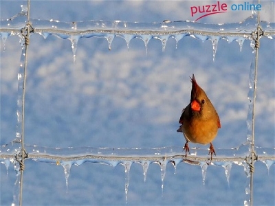 Puzzle Płot, Ptak, Kardynał, Lód