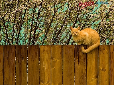 Płot, Gałązki, Rudy, Kot, Kwitnące
