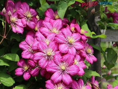 Płot, Różowe, Lato, Clematis, Kwiaty, Liście