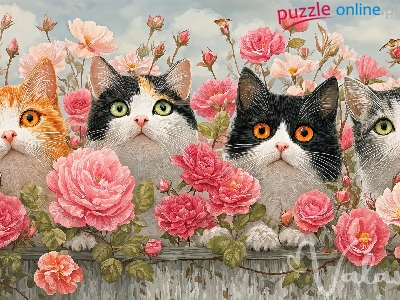 Puzzle Róże, Cztery, Koty, Płot