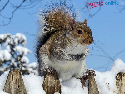 Puzzle Płot, Zima, Wiewiórka, Śnieg
