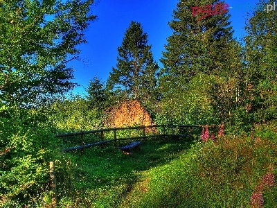 Ławka, Zieleń, Drzewa, Płot, Zakątek