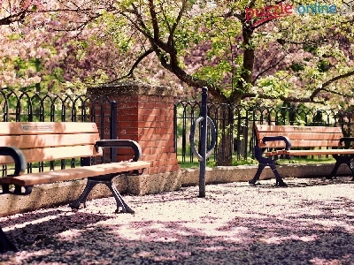 Płotek, Park, Ławeczki, Drzewa