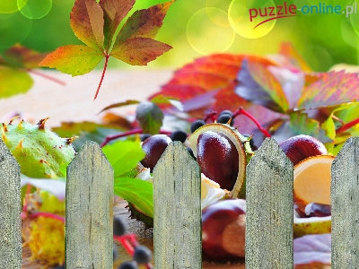 Puzzle Płotek, Liście, Kasztany, Jesień