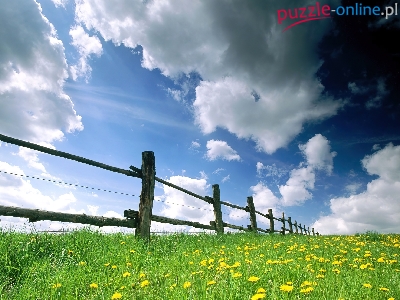 Puzzle Płotek, Łąka, Kwiatki, Chmury