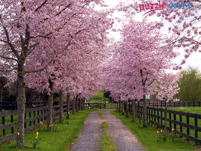 Płotki, Drzewa, Wiosna, Droga, Kwitnące