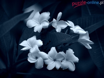 Puzzle Plumeria, Kwiaty, Biało-Niebieski