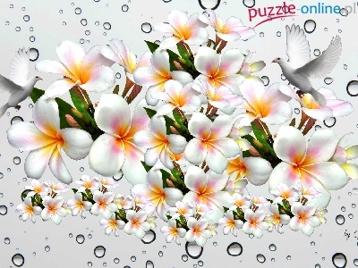 Puzzle Wody, Plumeria, Krople, 2D