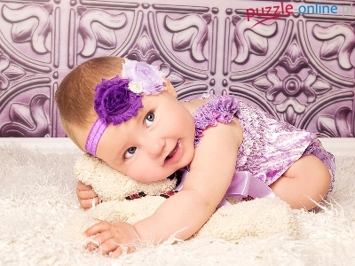 Zabawka, Opaska, Miś, Dziewczynka, Kocyk, Sukienka, Fioletowa, Dziecko, Kwiatki, Pluszak