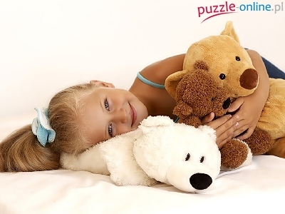 Puzzle Pluszaki, Dziewczynka, Zabawki, Misie