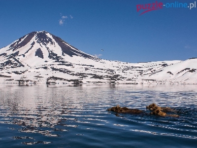 Góra, Pływanie, Rosja, Niedźwiedzie brunatne, Zima, Jezioro, Kamczatka