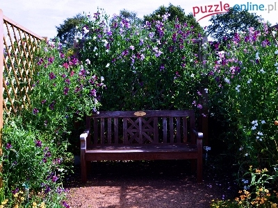 Puzzle Pnące, Ogród, Ławka, Kwiatki