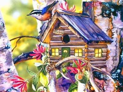 Pnie, Obraz, Ptaki, Domek, Drzew