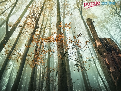 Puzzle Mgła, Drzewa, Las, Pnie