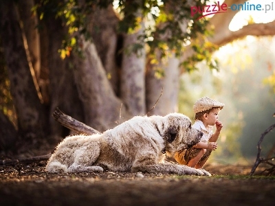 Puzzle Pnie, Chłopiec, Pies, Owczarek środkowoazjatycki