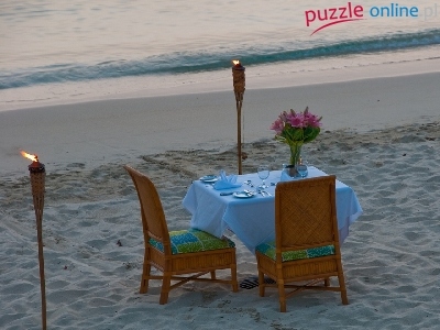 Pochodnie, Krzesła, Plaża, Piasek, Stół