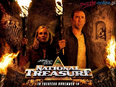 Nicolas Cage, podziemie, National Treasure 1, Diane Kruger, pochodnie