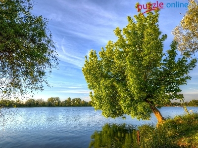 Puzzle Pochyłe, Rzeka, Drzewa, Drzewo