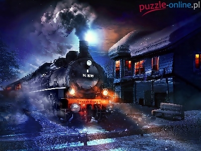 Puzzle PociÄ…g, Zima, Noc, Dworzec