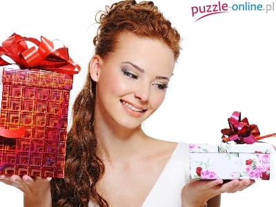 Puzzle Podarki, Piękna, Kobieta, Radość