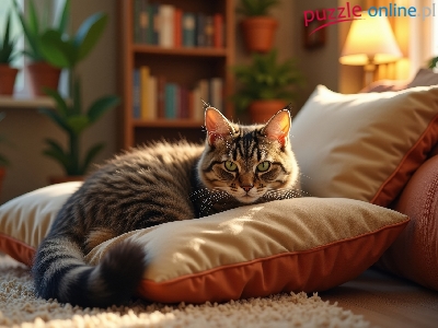 Kot, Poduszki, Spojrzenie, Grafika, Pokój