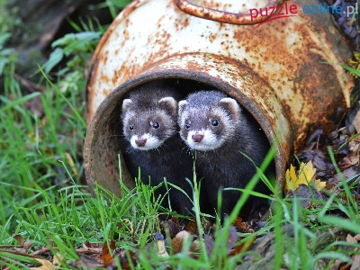 Puzzle Pojemnik, Fretki, Parka, Trawa
