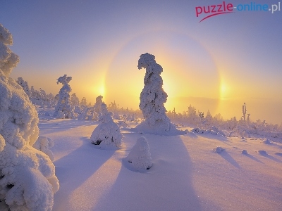 Puzzle Śniegiem, Drzewa, Pokryte, Słońce