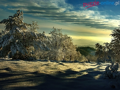 Puzzle Åšniegiem, Drzewa, Pokryte, Zaspy